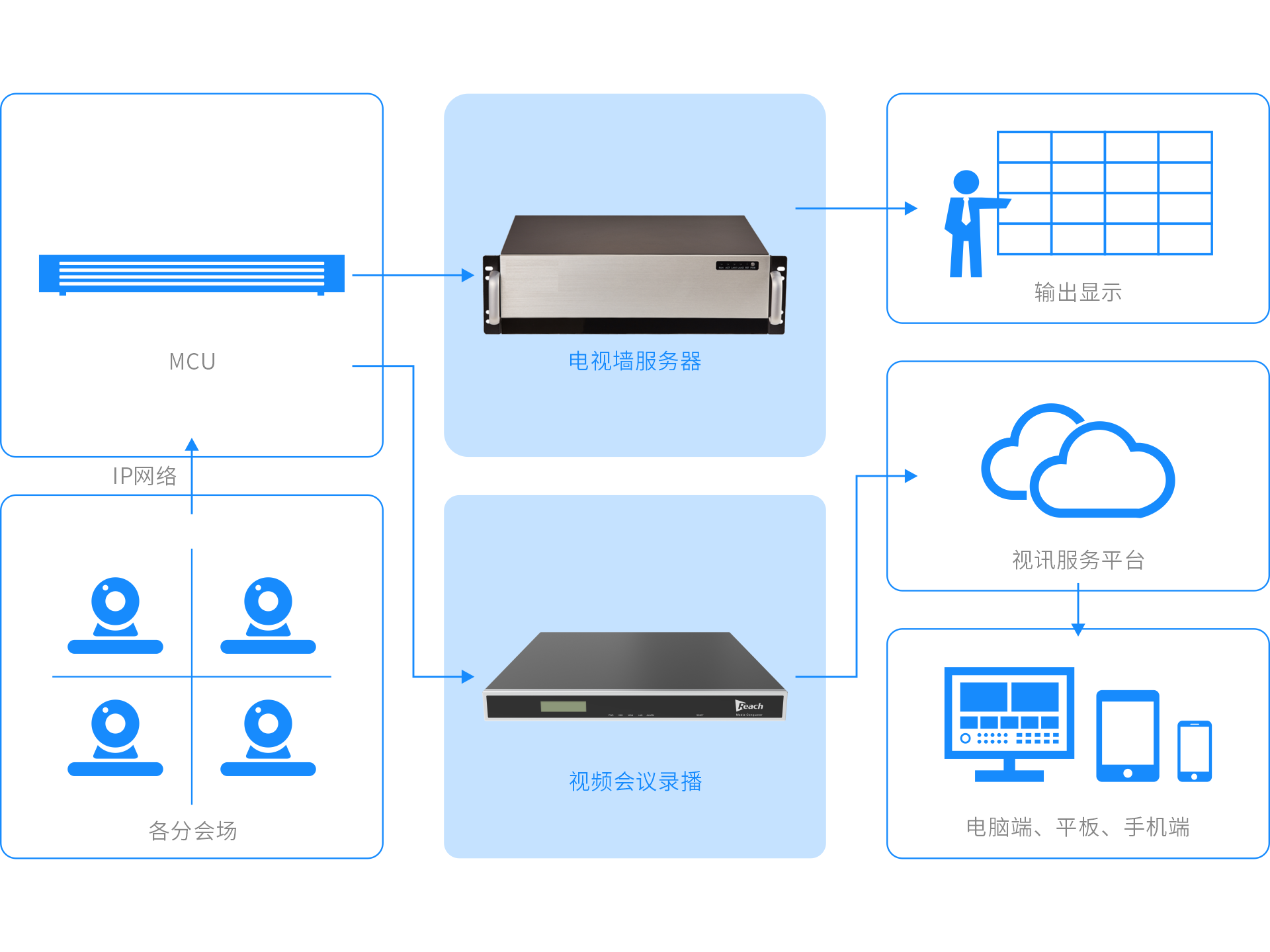 銳取為視頻會議??提供全?的配套服務,包括視頻會議錄播、視頻會議電視墻。視頻會議錄播解決??關于重要遠程會議內容進?記錄,并可進?在線分享,從?實現對重要會議的存檔、以及擴?會議的覆蓋?。視頻會議電視墻解決多會場?清同步呈現的應?需求,?泛應?于如應急管理,指揮調度等場景需求。